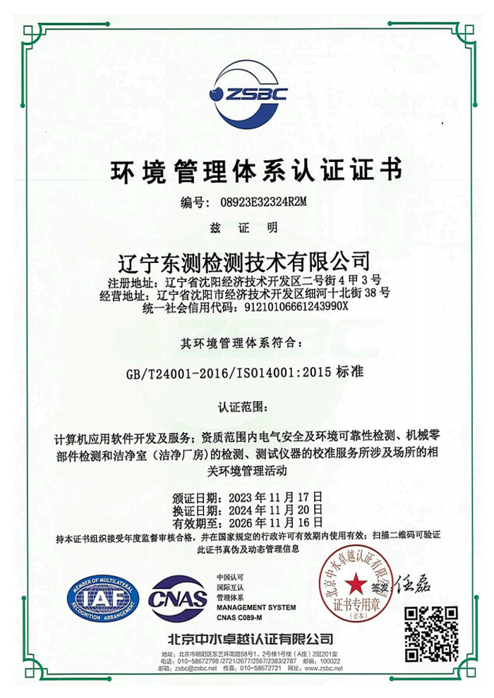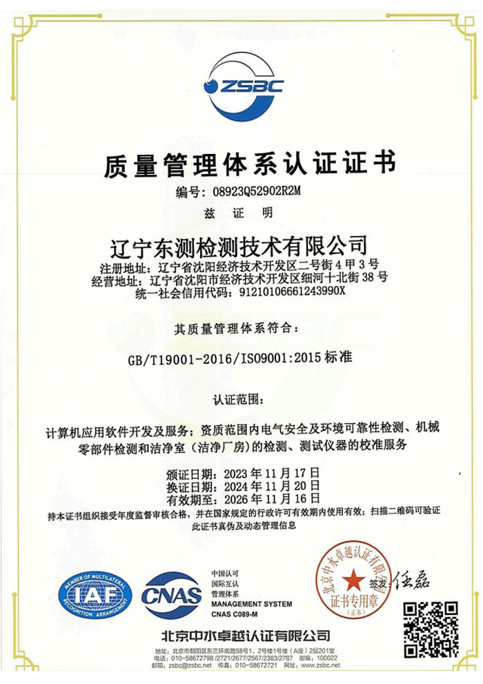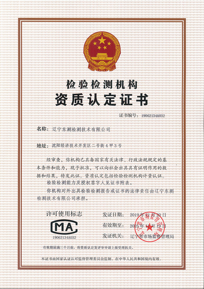 遼寧東測(cè)檢測(cè)技術(shù)有限公司成立于2007年6月21日,專注于為客戶提供計(jì)量、檢測(cè)以及技術(shù)咨詢與培訓(xùn)服務(wù)。